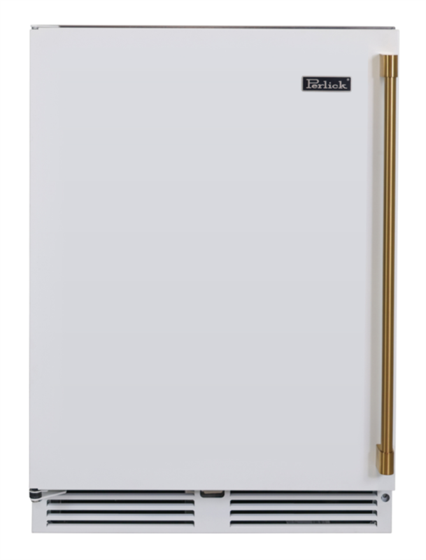 Add a pop of color to any standard height Perlick under counter refrigerator with a painted white or black replacement door accented with brushed brass handles
