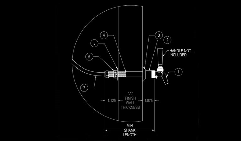 Cooler Tapping Kit with 8" Shank, 5 Faucet, 3" to 5" Wall Thickness