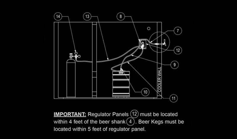 - Faucets and shanks chilled by walk-in cooler