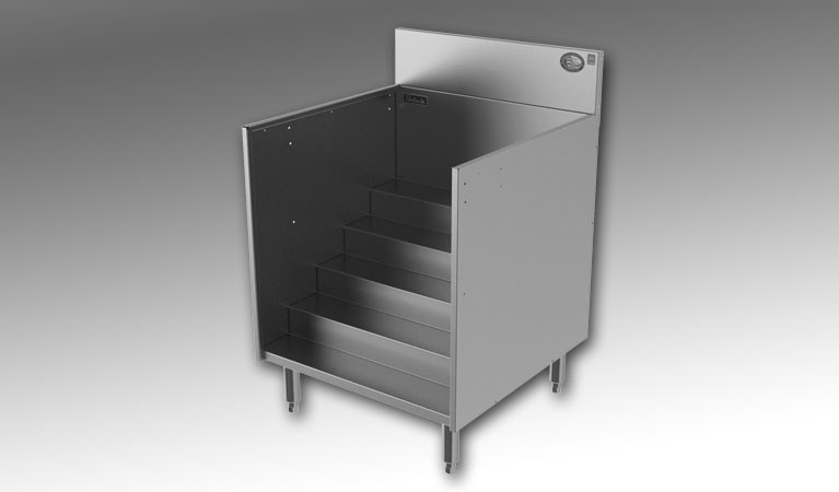 18" Liquor Step. A Liquor Step Cabinet effectively stores bottles within easy reach of the bartender.