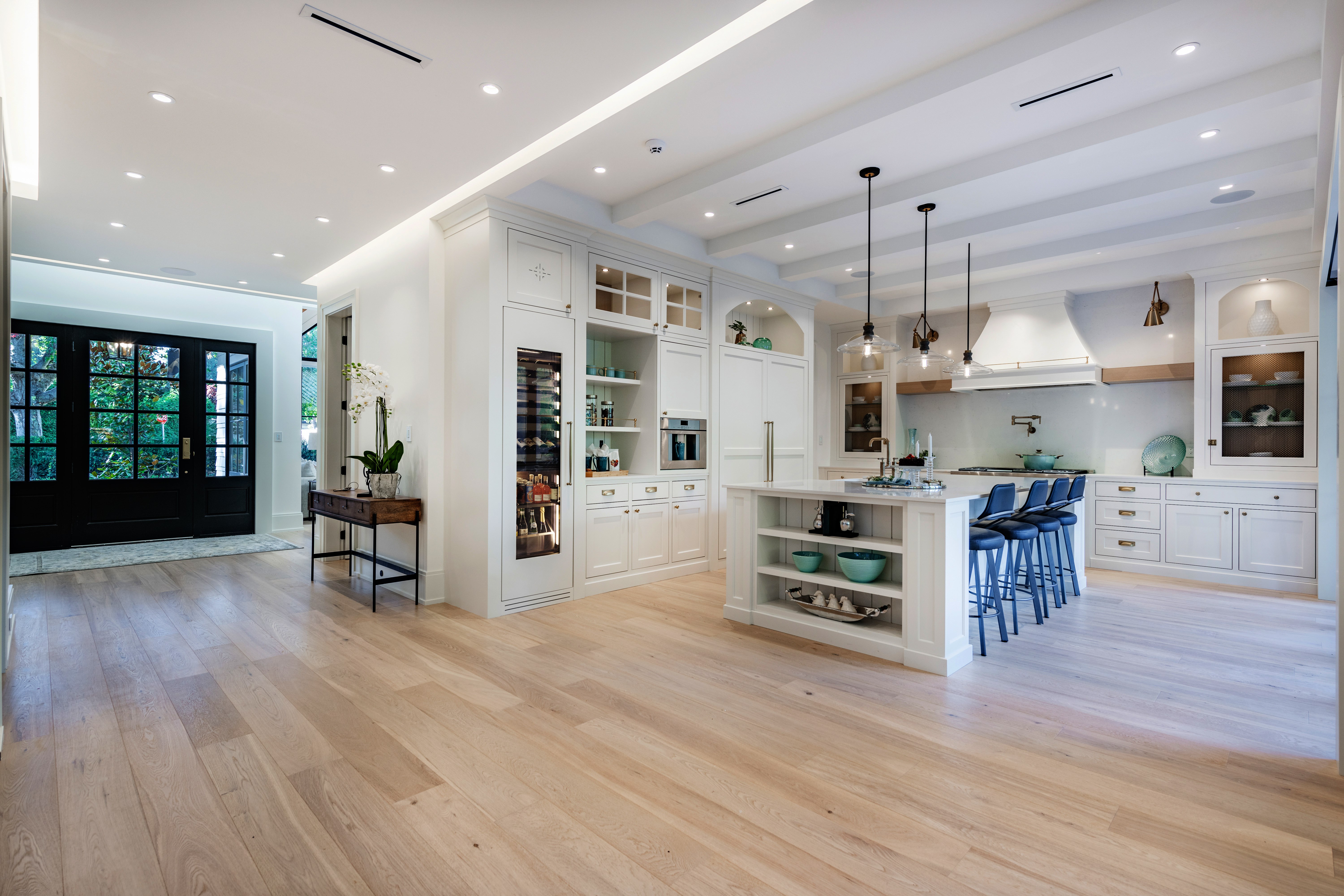 - Roll on theatre style lighting slowing fades on to highlight collection. Choose between white or blue display lighting with five preset brightness levels to match any ambiance.