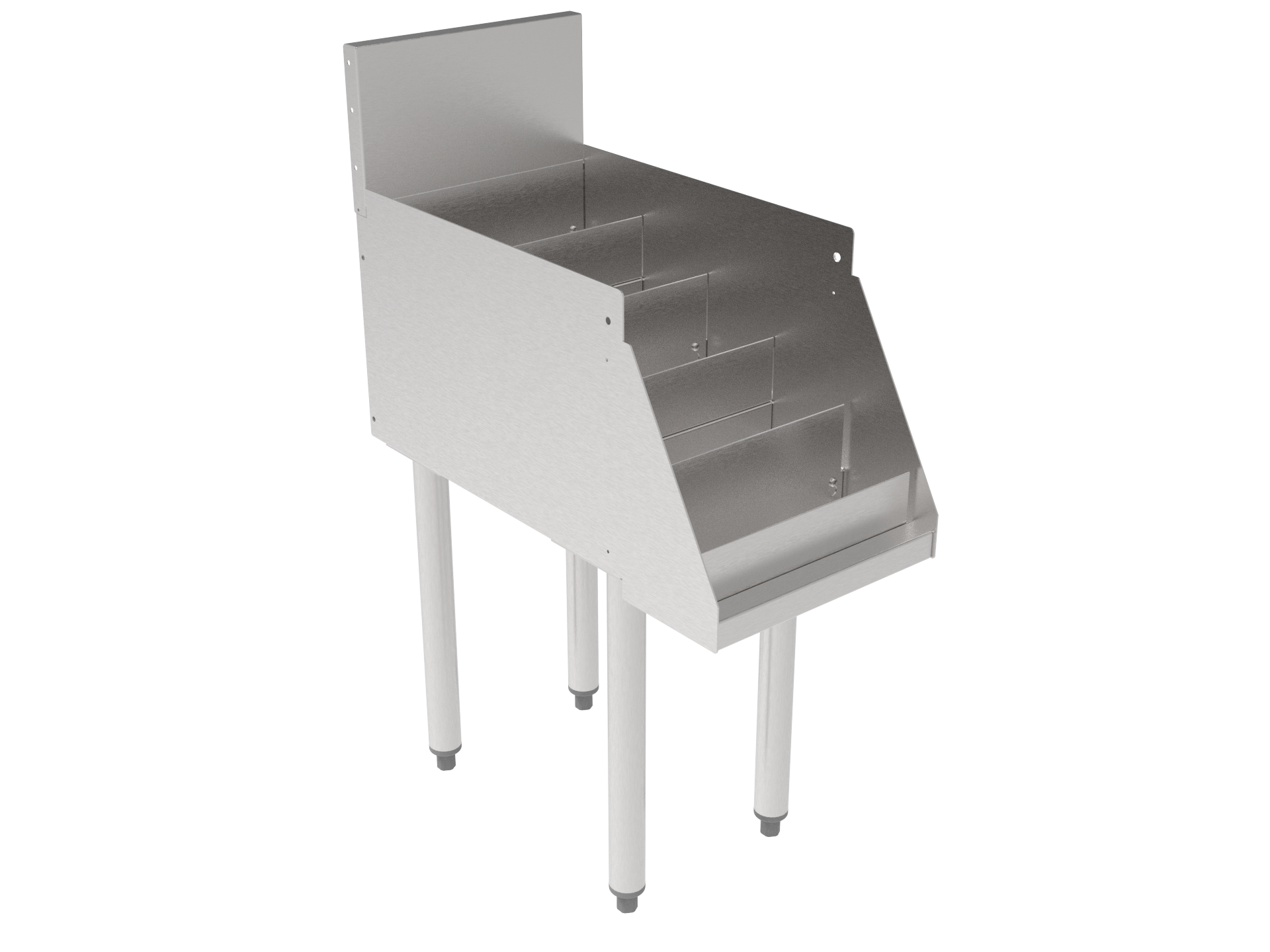 - Backsplash - Stainless steel 6" high (4" high optional) with 1" return at top, mechanically fastened and sealed with steel support brackets