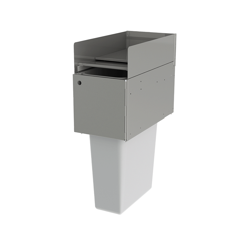12" trash unit with sliding lid and door. Dry waste units effectively provide locations for various sizes of Trash Receptacles. They require adjacent support of Underbar equipment or accessory end panel and leg kit.