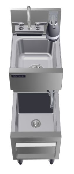 The Top Shelf Combination Hand/Dump sink offers a space saving design to meet hand wash station needs with dump sink capabilities all in one 12" foot print!