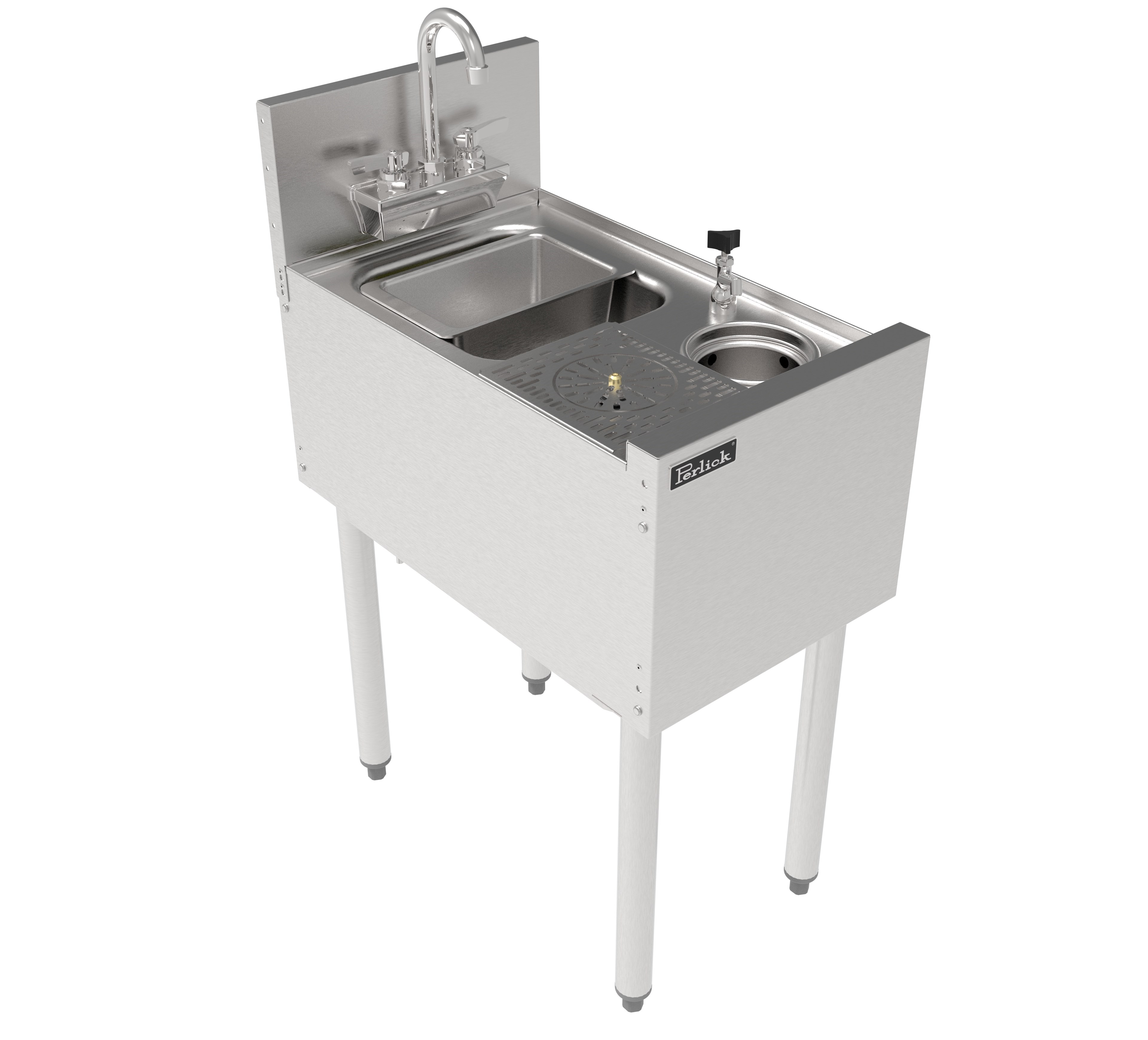 Perlick top shelf prep sinks are designed with special features to enhance the efficiency of the bartender cockpit and craft cocktail production