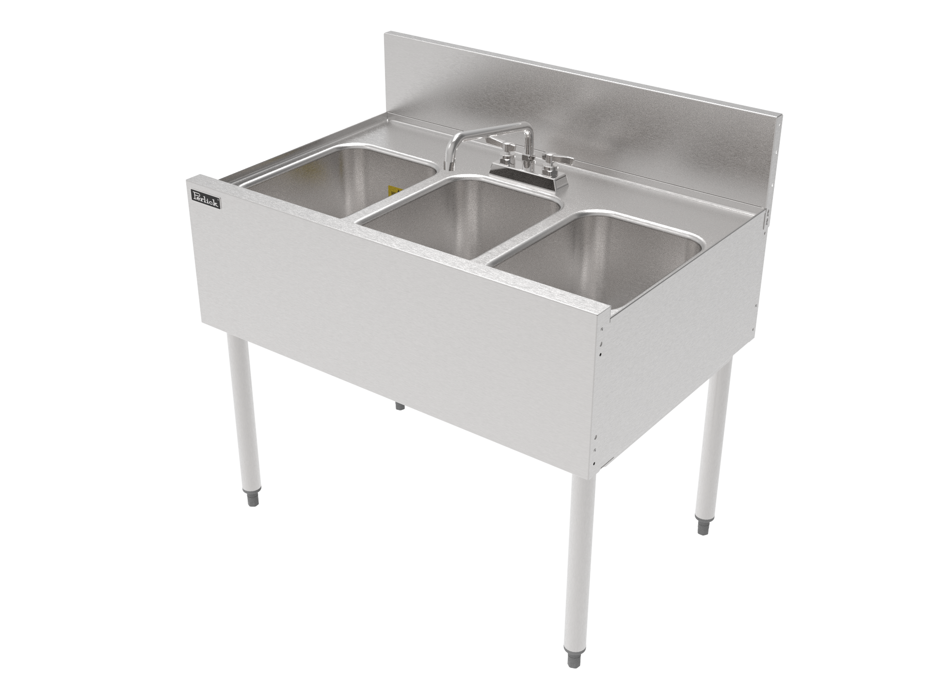 wet waste, glass washing, rinsing, and sanitizing. Three-tank Stainless Steel