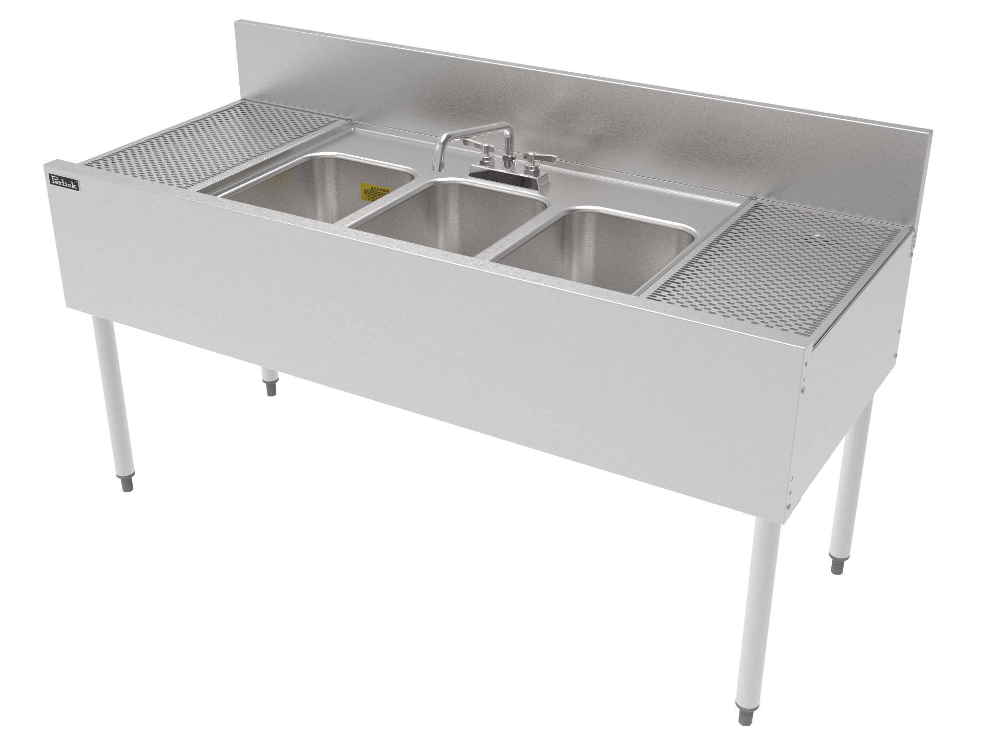 wet waste, glass washing, rinsing, and sanitizing. Three-tank Stainless Steel